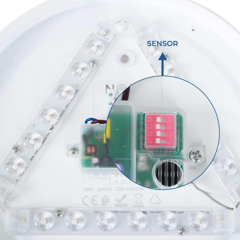 LED plafondlamp 18W met geluidssensor en schemersensor - IP44