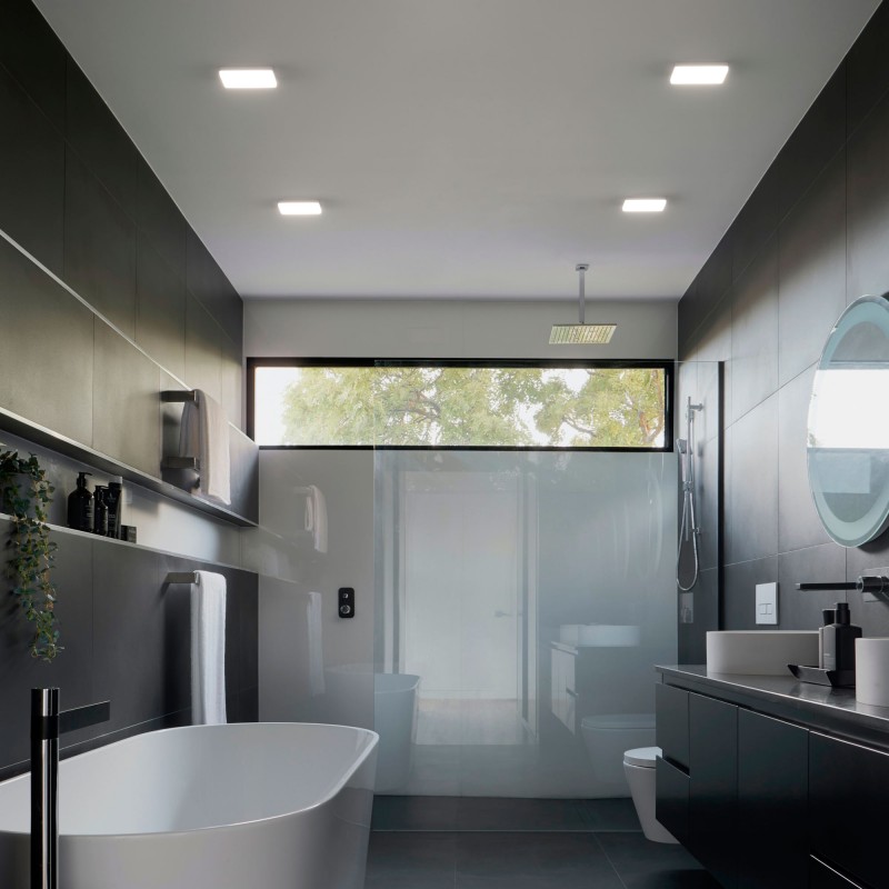 De IP44-beschermingsgraad maakt hem zeer goed bestand tegen vocht en maakt hem tot een ideale armatuur voor badkamers, keukens of overdekte buitenruimtes, op voorwaarde dat hij niet rechtstreeks aan vloeistoffen wordt blootgesteld.