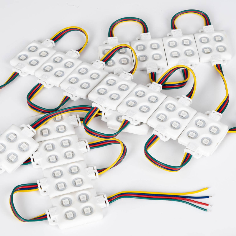 - Hoog vermogen: Elke module heeft 4 geïntegreerde SMD 5050 LED-chips, elk met een vermogen van 0,96 W, voor een heldere en gelijkmatige verlichting.