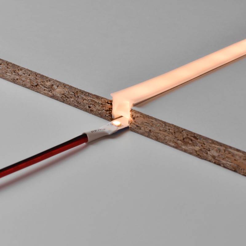Voor de installatie wordt de LED-strip niet in de hoes gestoken, maar moet hij worden vastgekleefd op het oppervlak waar hij moet worden geïnstalleerd. Vervolgens wordt de siliconen hoes bovenop de LED-strip geplaatst.