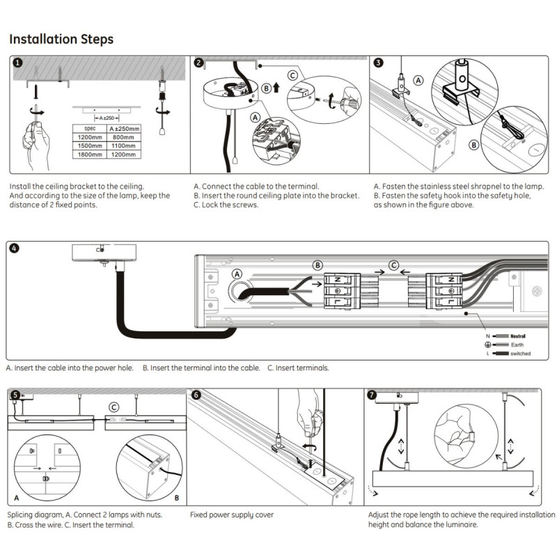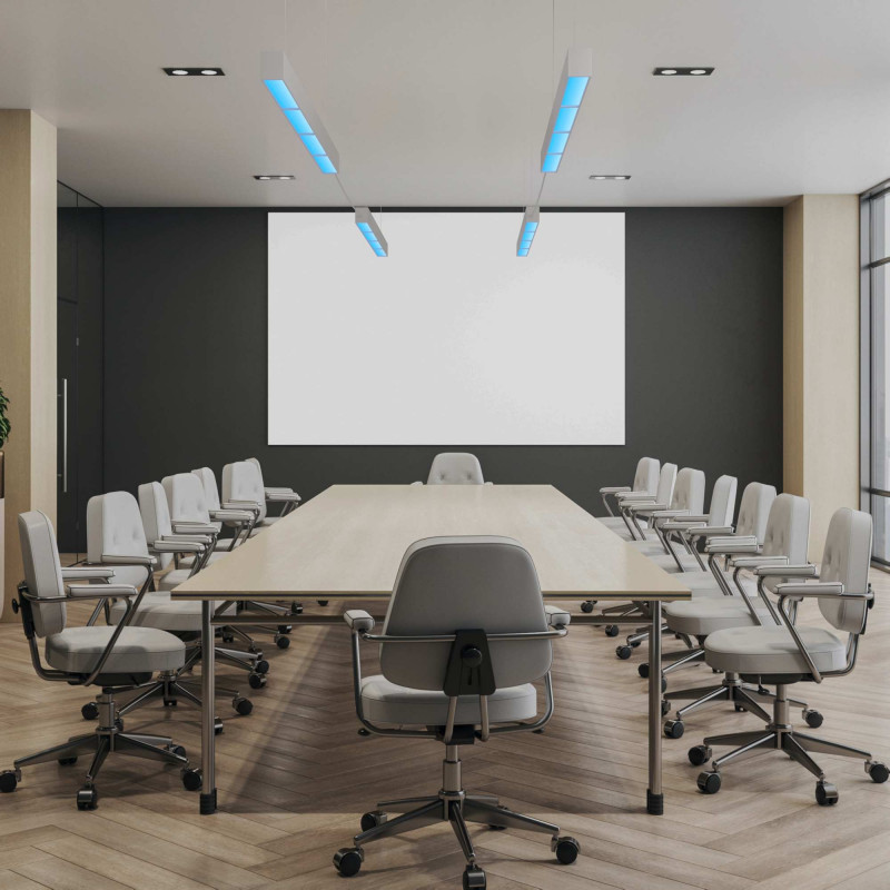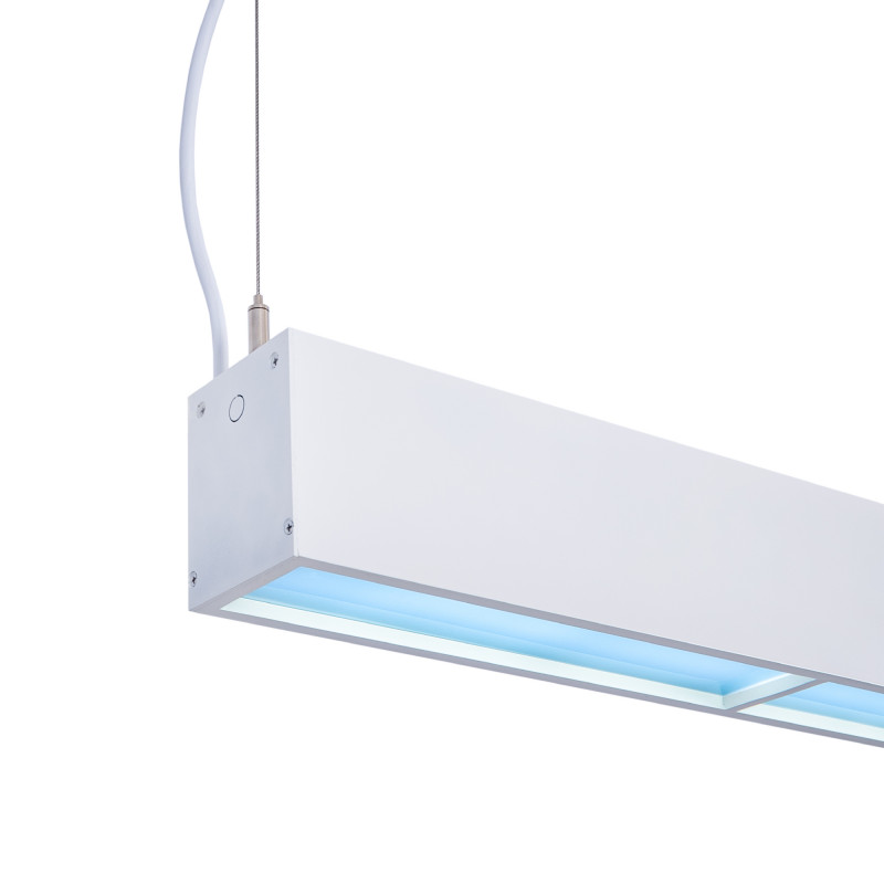 De Blue Skylight lineaire armatuur is ontworpen om zich aan te passen aan verschillende omgevingen en kan eenvoudig hangend worden geïnstalleerd. Het bevat alle accessoires voor installatie.