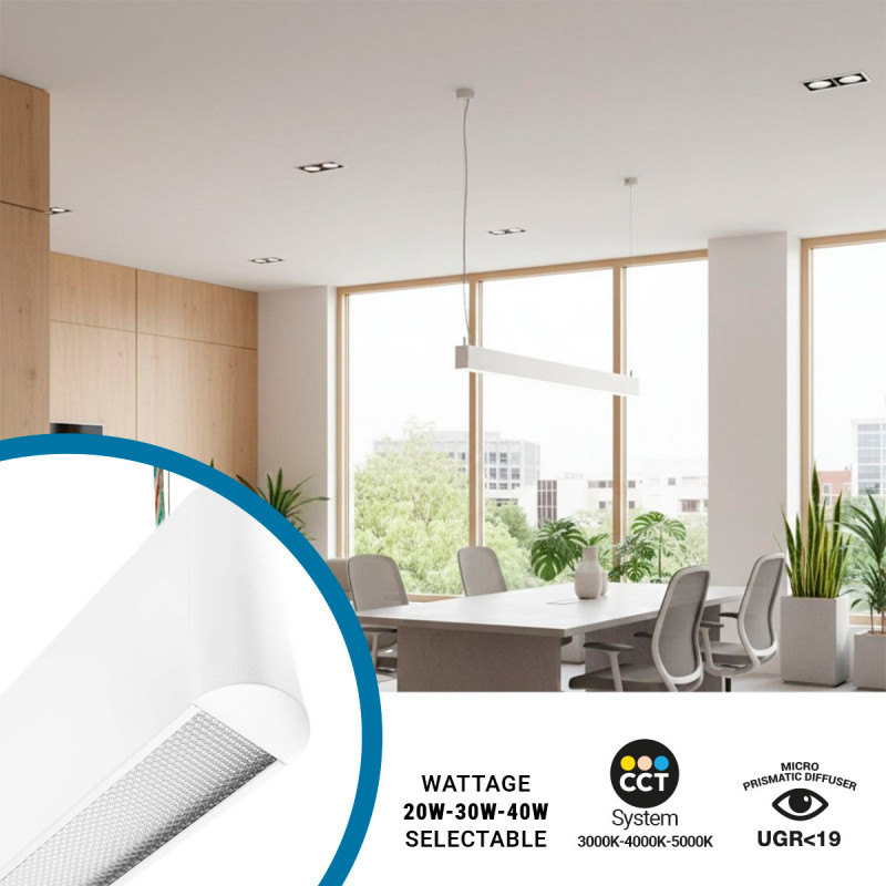Lineair LED CCT armatuur - Ophanging - Verstelbaar wattage 20W/30W/40W - 120cm - UGR 19