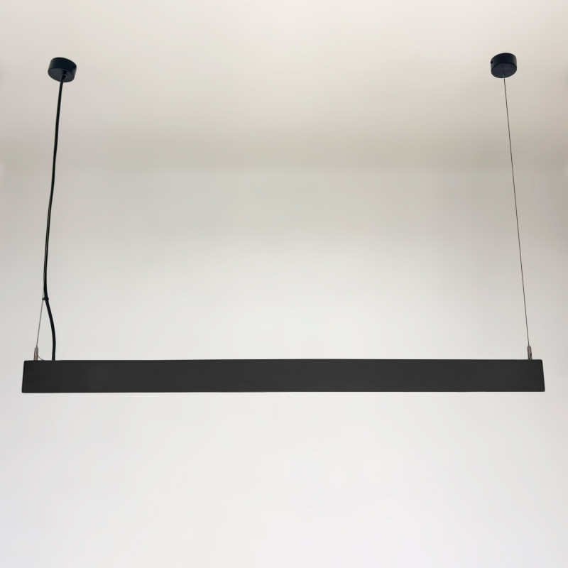 Lineaire LED-armatuur met een modern ontwerp voor pendel- of opbouwinstallatie, ideaal voor kantoren, winkels en werkruimten die professionele, efficiënte verlichting met een hoog visueel comfort nodig hebben.