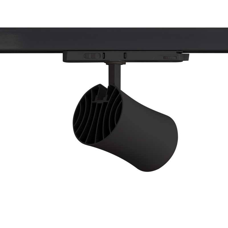 Deze schijnwerper is ontworpen voor driefasige railsystemen en biedt een uniek gebogen randontwerp dat een moderne en verfijnde touch toevoegt aan elke commerciële ruimte.