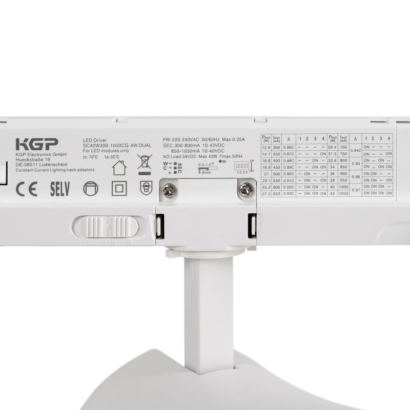 CCT driefasige op rails gemonteerde architecturale LED schijnwerper - 40W - CRI 90 - Bestuurder KGP 350º draaibaar.