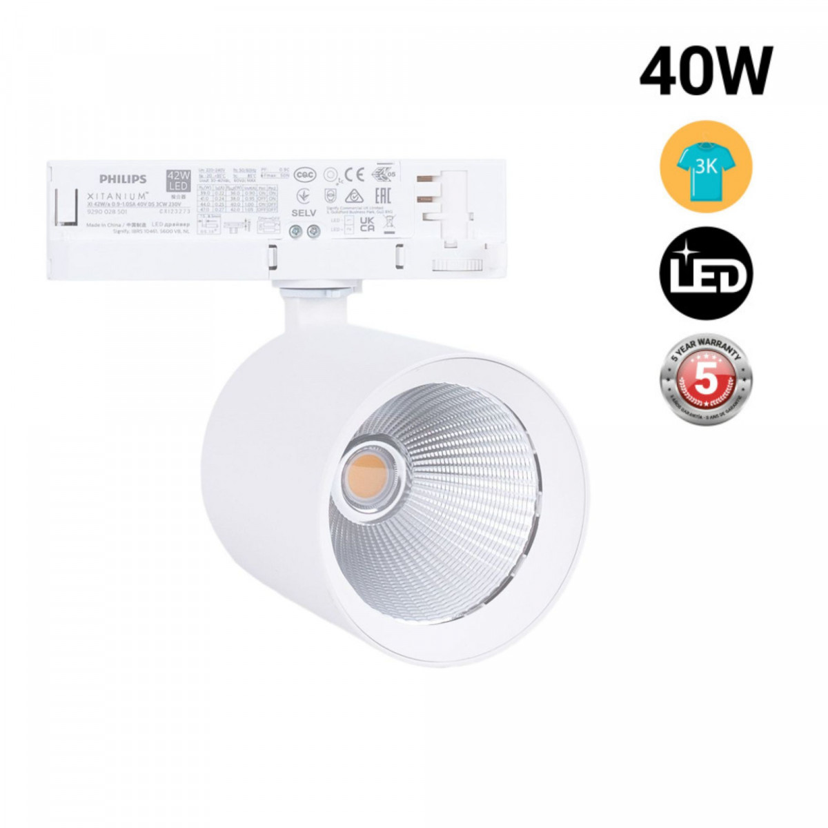 LED Track Spotlight 3 fase 4000K - 40W - CRI 95 - Driver Philips Xitanium - Wit