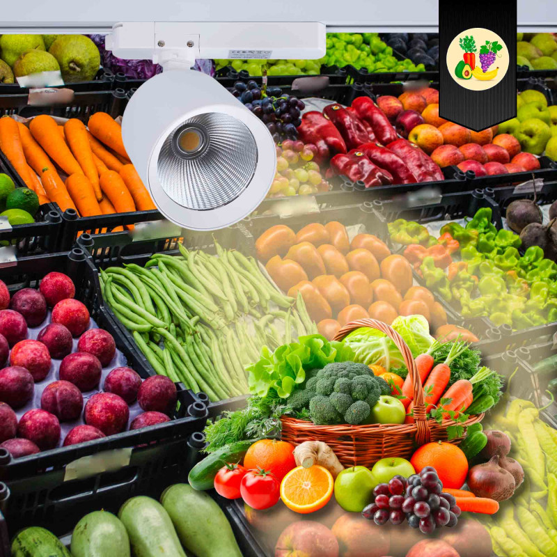 Deze enkelfasige LED trackspot combineert efficiëntie en esthetiek, speciaal ontworpen om de versheid van fruit en groenten te benadrukken. Hij verbetert de presentatie van producten en trekt de aandacht van klanten.