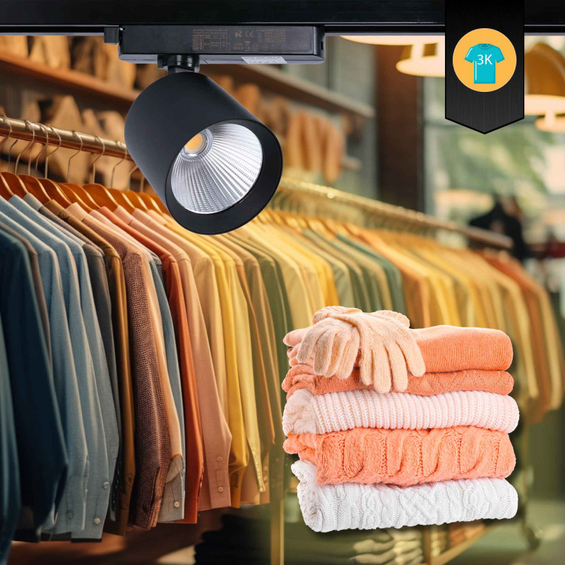 Deze enkelfasige LED railspot combineert efficiëntie en esthetiek, speciaal ontworpen om de kleuren en texturen van kleding te benadrukken en klanten aan te zetten tot kopen.