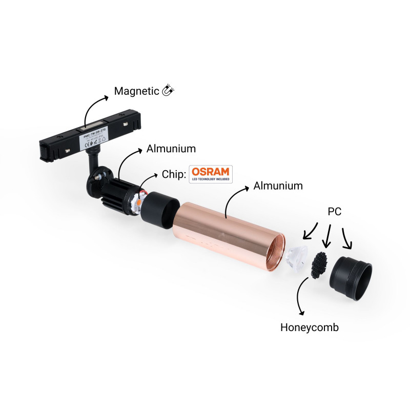 LED-spot voor magnetische rail 48V - 7W - OSRAM chip - 2700K - Kleuren