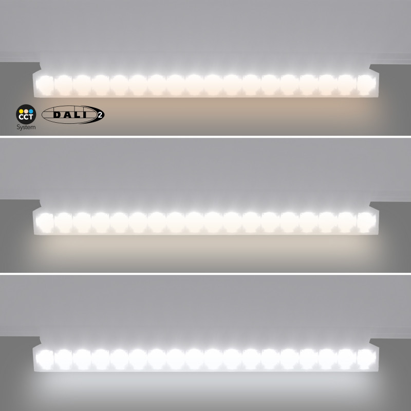 - Instelbaar CCT-systeem: Door middel van DALI-regeling kan de kleurtemperatuur worden ingesteld tussen 2700K en 6000K om te voldoen aan verschillende behoeften en sferen. De standaardkleur van het armatuur is neutraal wit.