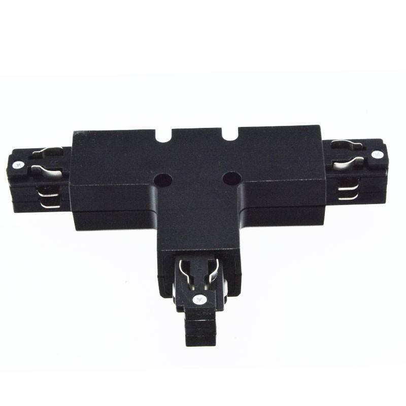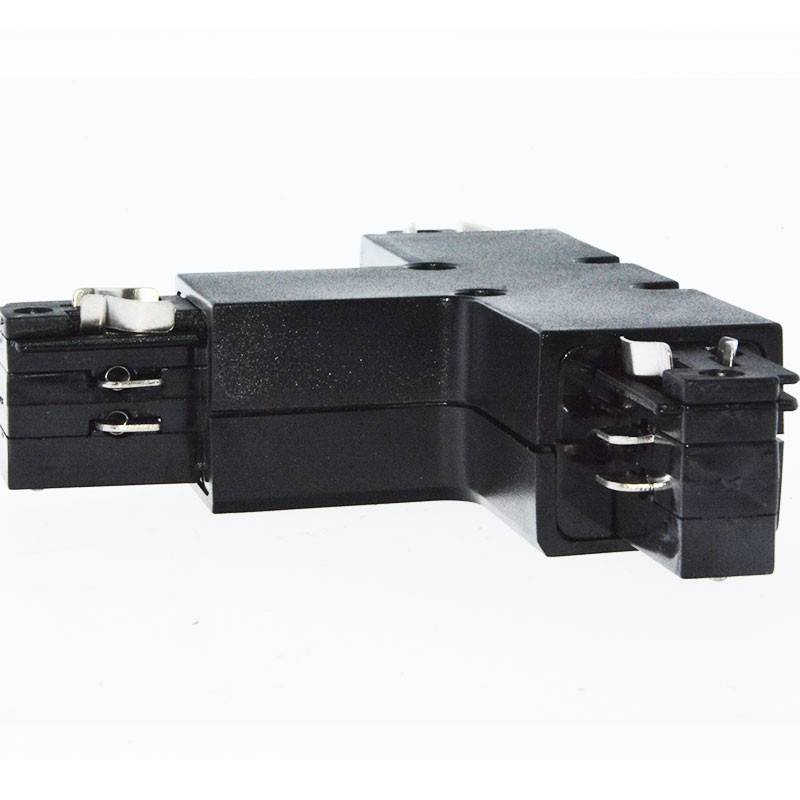 Dit scharnier vergemakkelijkt de aansluiting van drie secties driefasige opbouwrails in een rechte hoek, waardoor de montage van driefasige rails voor LED-verlichting wordt geoptimaliseerd.