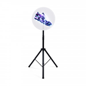 Hij wordt geleverd met een in hoogte verstelbaar zwart aluminium statief (120 tot 220 cm) waarmee hij overal snel en eenvoudig kan worden opgesteld. Hij is ook zeer efficiënt dankzij de LED-technologie, zodat hij continu kan worden gebruikt met een laag energieverbruik.