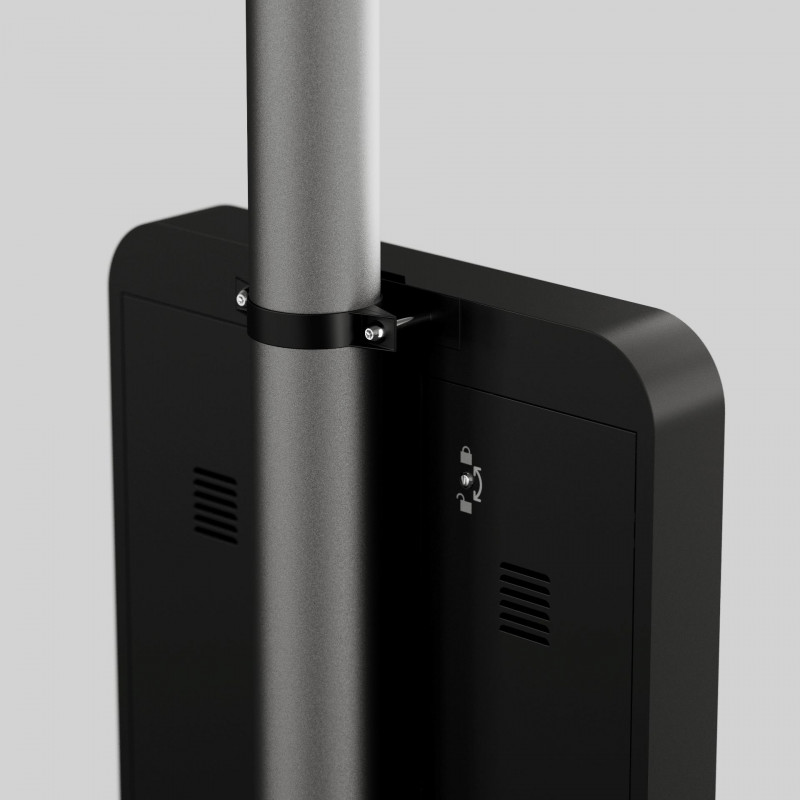 Dit innovatieve display heeft een verankeringssysteem met verstelbare klemmen voor installatie op allerlei soorten palen en lantaarnpalen.