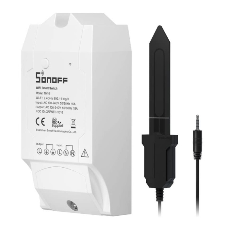 Intelligente vochtdetector, hygrometer, plantenmeter, doe-het-zelf-tuintesthulpmiddel, werkt via spraak met TH10/ TH16 (niet inbegrepen, binnenkort verkrijgbaar). MS01 heeft een IP55 waterdichtheid waardoor je je bloemen water kunt geven zonder de sensor te hoeven verwijderen, zelfs als je hem buiten in de regen laat staan. MS01 is een accessoire voor de TH10/TH16 en werkt samen met de SONOFF TH10/16 om de bodemvochtigheid nauwkeurig te meten en gegevens naar je mobiele telefoon te sturen. Je kunt regelmatig water geven en de bodemvochtigheid altijd en overal controleren om je bloemen gezonder te laten groeien. TH10/16 is een Wi-Fi slimme schakelaar met temperatuur- en vochtigheidsbewaking.