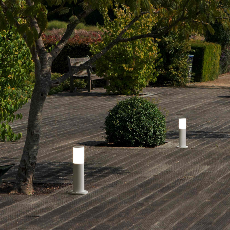 Middelgrote (40cm) padverlichtingspaal, met een modern ontwerp met buisvorm en gemaakt van schokbestendig hars, bestand tegen roest, corrosie en UV-stralen.