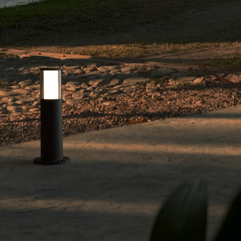 Middelgrote paal (40 cm) voor padverlichting, met een modern ontwerp met buisvorm en gemaakt van schokbestendig hars, bestand tegen roest, corrosie en UV-stralen.