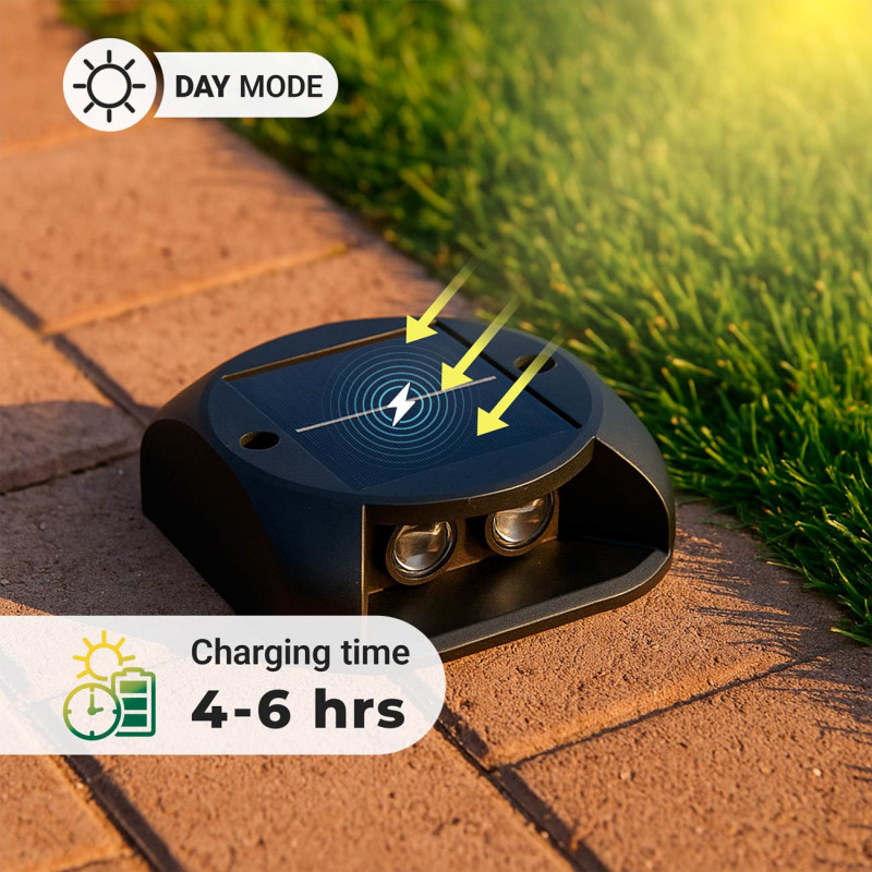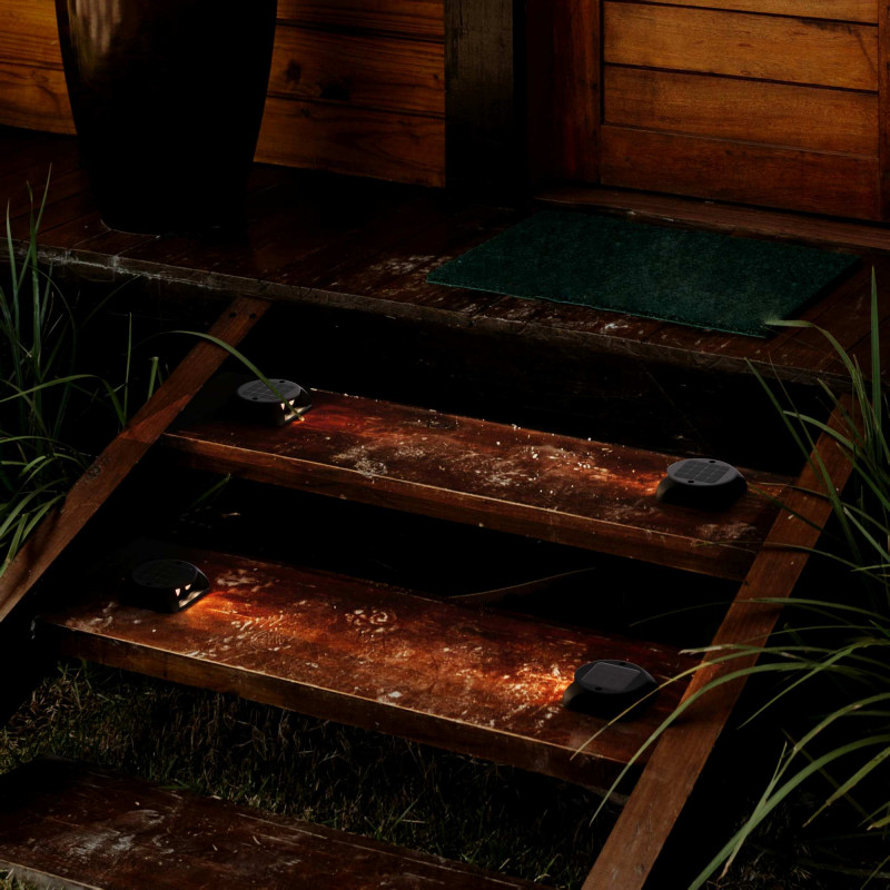 Deze zonnelamp is ontworpen voor installatie op buitentrappen of trottoirs en biedt discrete, zelfstandige bewegwijzering. Het is ideaal voor het markeren van paden en het verlichten van ingangen, terrassen of tuinen, zonder dat er een elektrische aansluiting nodig is.