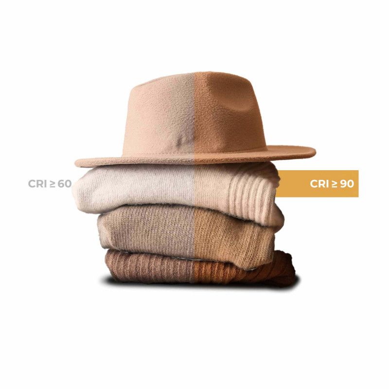 - Wysoka jakość światła: Dzięki współczynnikowi oddawania barw (CRI >90) wiernie odwzorowuje kolory, podobnie jak naturalne światło, przyciągając uwagę klientów. Ponadto szeroki kąt otwarcia 120º zapewnia ogólne oświetlenie, które obejmuje duże przestrzenie.