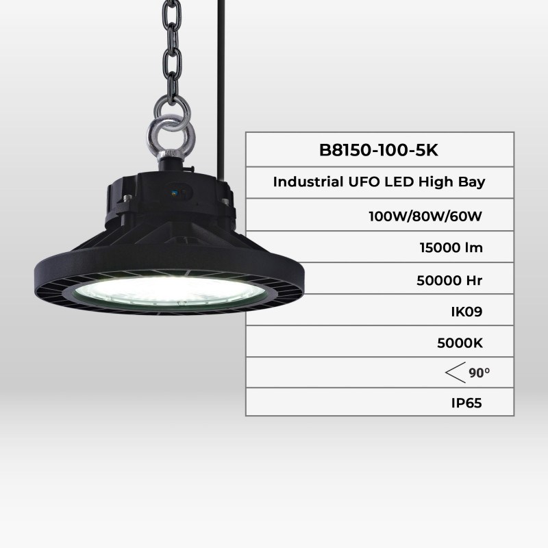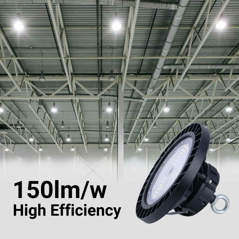 - Wysokowydajna technologia: Wyposażona w chipy LED Philips Lumileds, ta czasza oferuje 150 lm/W, zapewniając chłodne białe (5000K) oświetlenie, które zapewnia przejrzystość i komfort wizualny w dużych przestrzeniach.