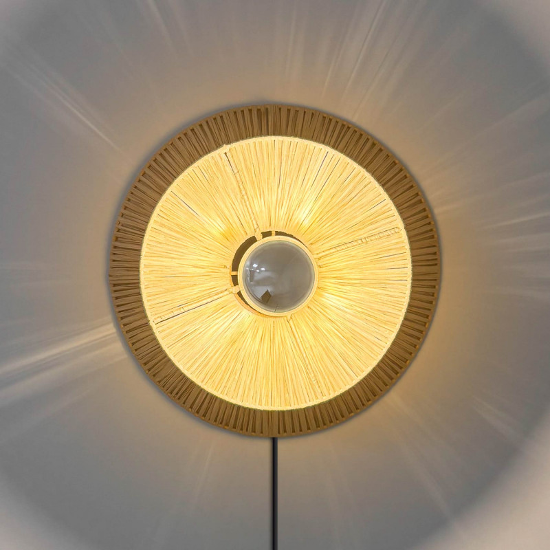 Aplika ścienna z naturalnego włókna rafii "HALLIE" - E27 - Włącznik i gniazdko