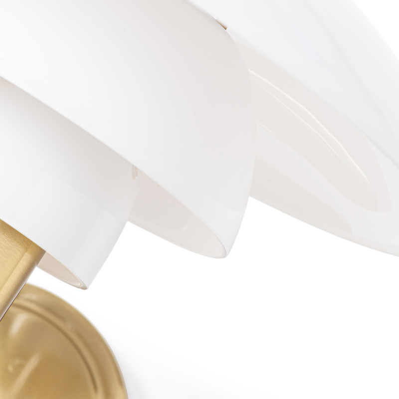 Znakomicie zaprojektowana lampa ścienna z potrójnym kloszem z opalowego szkła i aluminiową podstawą.