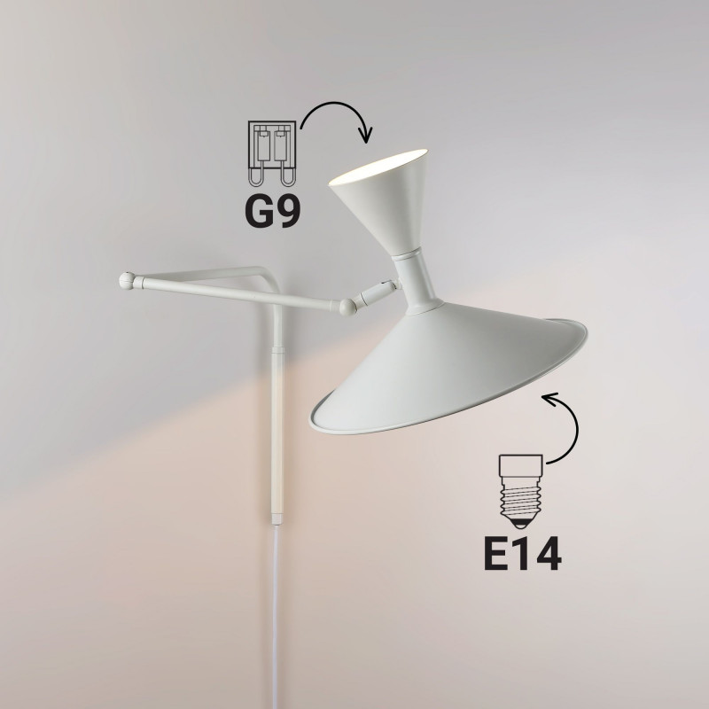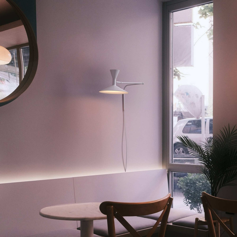 - Wyrafinowana estetyka: przegubowa metalowa konstrukcja z podwójnym kloszem, który emituje dwukierunkowe światło, aby poprawić estetykę i równowagę przestrzeni.