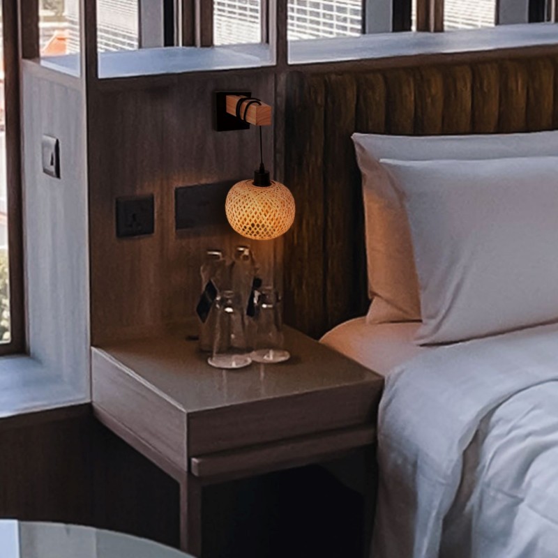 Drewniana i wiklinowa lampa ścienna "Shelley" - E27