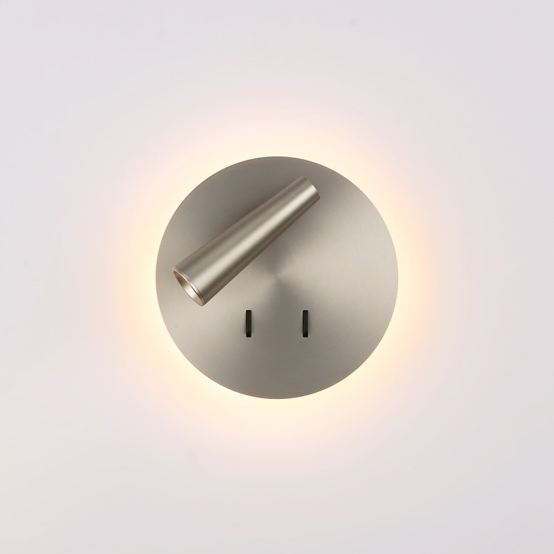 Ta lampa ścienna ma nowoczesny design i wykończenie ze szczotkowanego metalu. Cylindryczny reflektor i okrągła podstawa pasują do stylu współczesnego, industrialnego i skandynawskiego.