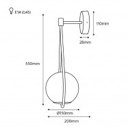 Zawiera gniazdo, które akceptuje kulistą żarówkę E14 G45 (brak w zestawie) o maksymalnej mocy 40W.