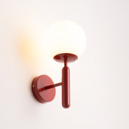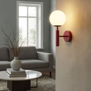 Kinkiet "Elsa" o eleganckim designie, składający się z kuli z opalowego szkła i metalowej podstawy.