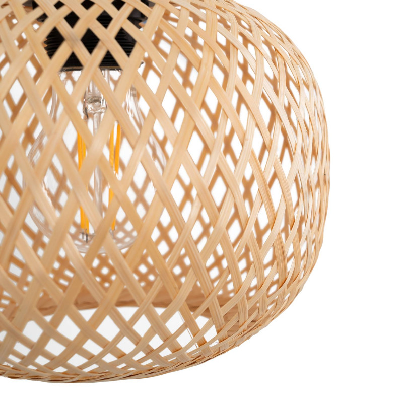- Naturalny styl: klosz z plecionej wikliny i podstawa z naturalnego drewna tworzą równowagę między stylem rustykalnym i nowoczesnym.