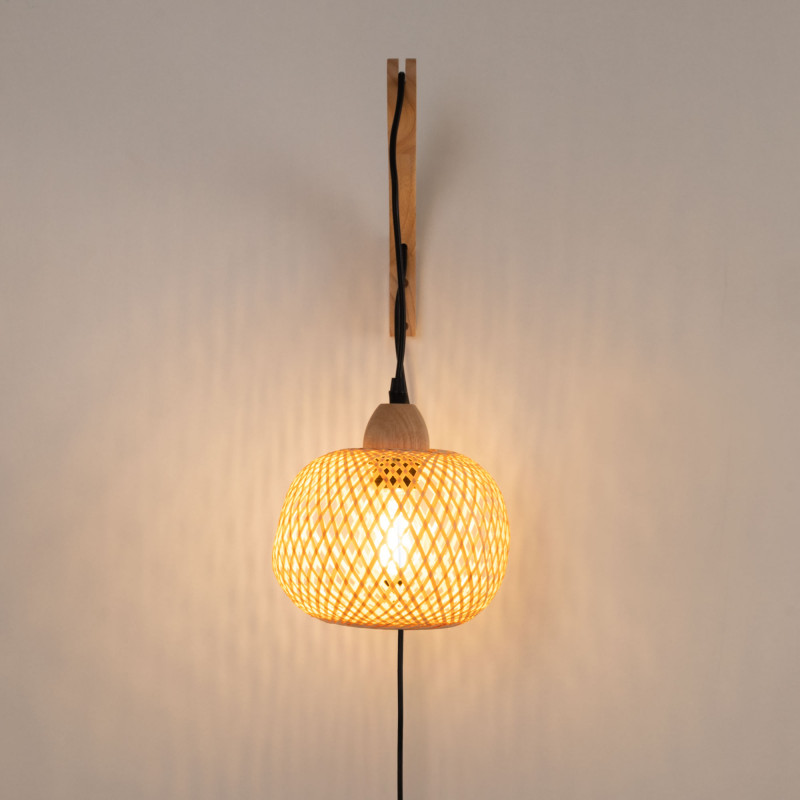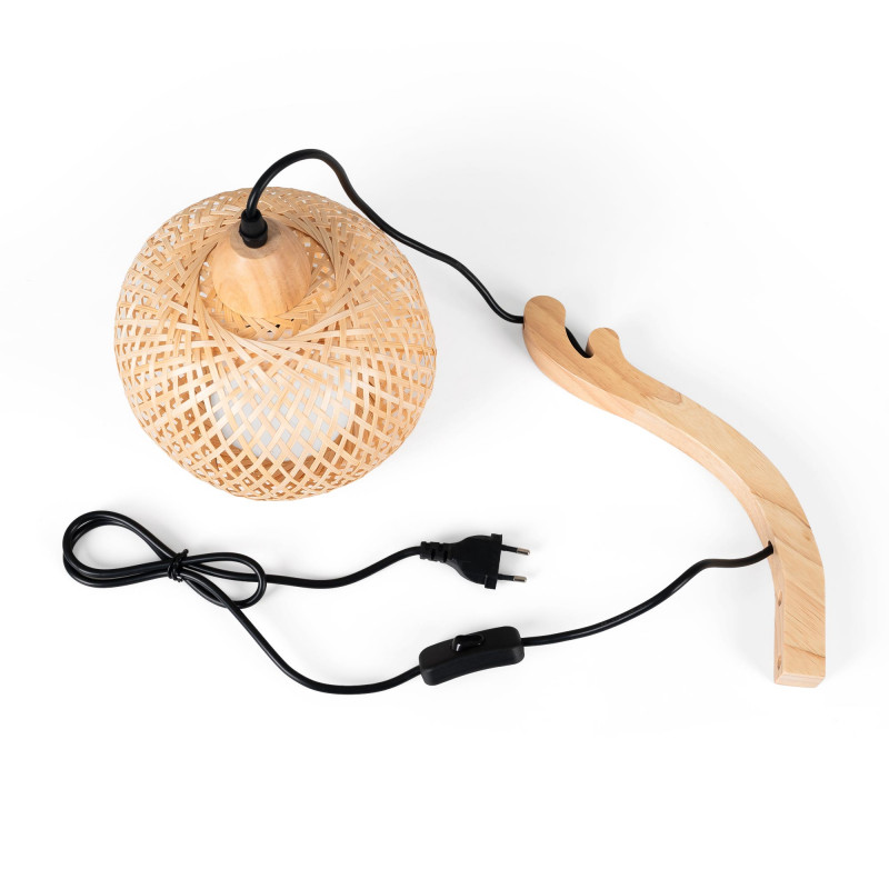 Kinkiet z wikliny i drewna "Phuket" - Z przewodem i wtyczką - E27