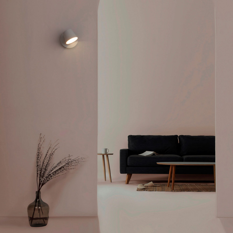 Obrotowa głowica lampy ściennej KOP zawiera zintegrowany chip LED o poborze mocy zaledwie 6 W, oferujący 520 lumenów w ciepłej barwie światła 2700K. Jest to odpowiednik żarówki halogenowej o mocy 50 W. Jego minimalistyczny skandynawski design z matowego białego lakierowanego metalu pozwoli na połączenie go z każdym rodzajem dekoracji.