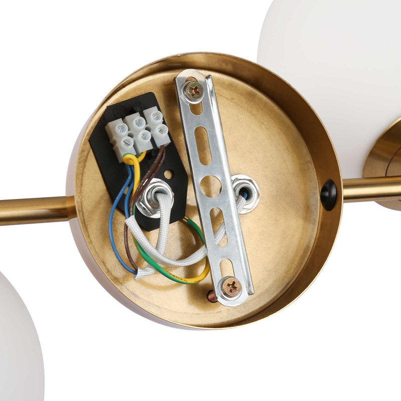 Posiada rozetę i aluminiową konstrukcję, na której umieszczono dwa kuliste klosze ze szkła opalowego o wysokiej przepuszczalności światła, zapewniające jasne i jednorodne oświetlenie.