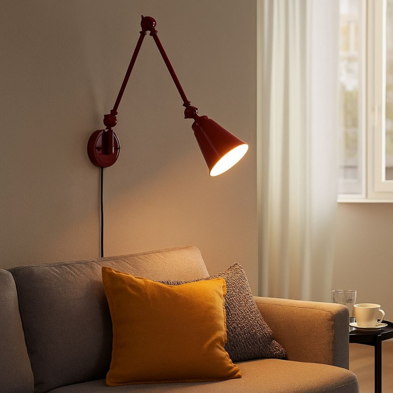 Regulowana lampa ścienna w stylu vintage z kablem i wtyczką "Tika".