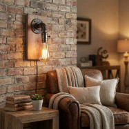 Przemysłowy design w stylu vintage nadaje wnętrzu elegancki styl retro. Unikalny styl oparty na miedzianej rurze wodociągowej, używanej w dawnych czasach. Zawiera przełącznik w gnieździe, dzięki czemu jest zintegrowany z lampą.