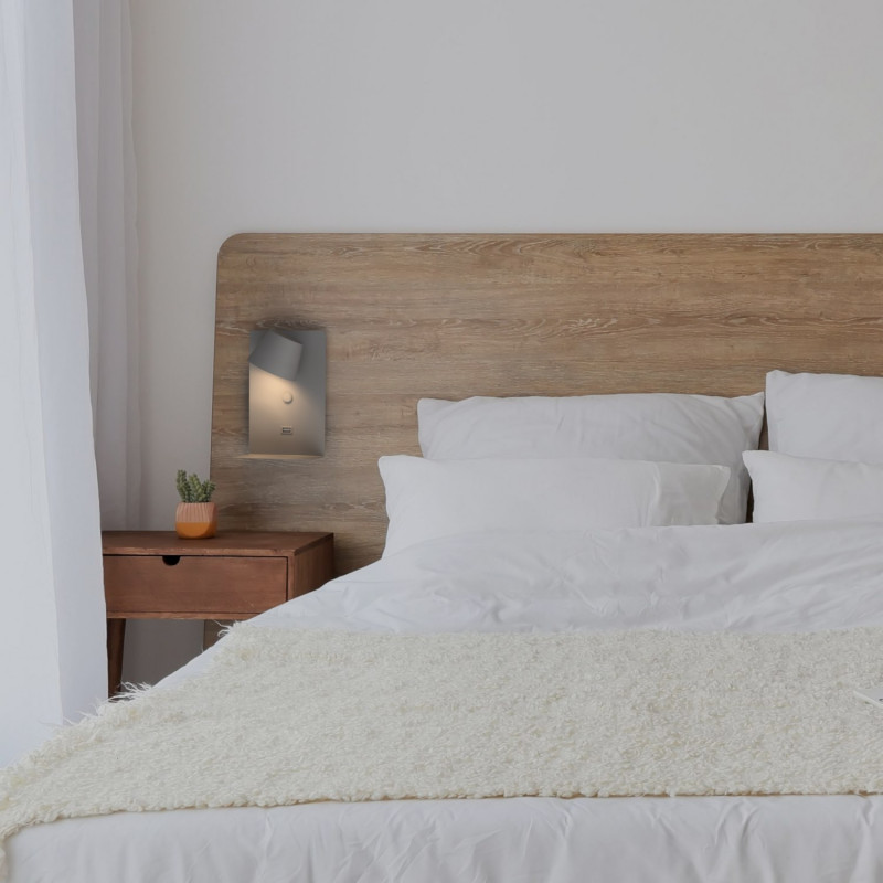 Dzięki nowoczesnemu wzornictwu i funkcjonalności, ta lampa ścienna stanowi praktyczne i estetyczne rozwiązanie. Została specjalnie zaprojektowana do montażu w zagłówkach łóżek, zarówno w domu, jak i w hotelach, ale może być również używana w biurkach, pokojach konsultacyjnych lub recepcjach.