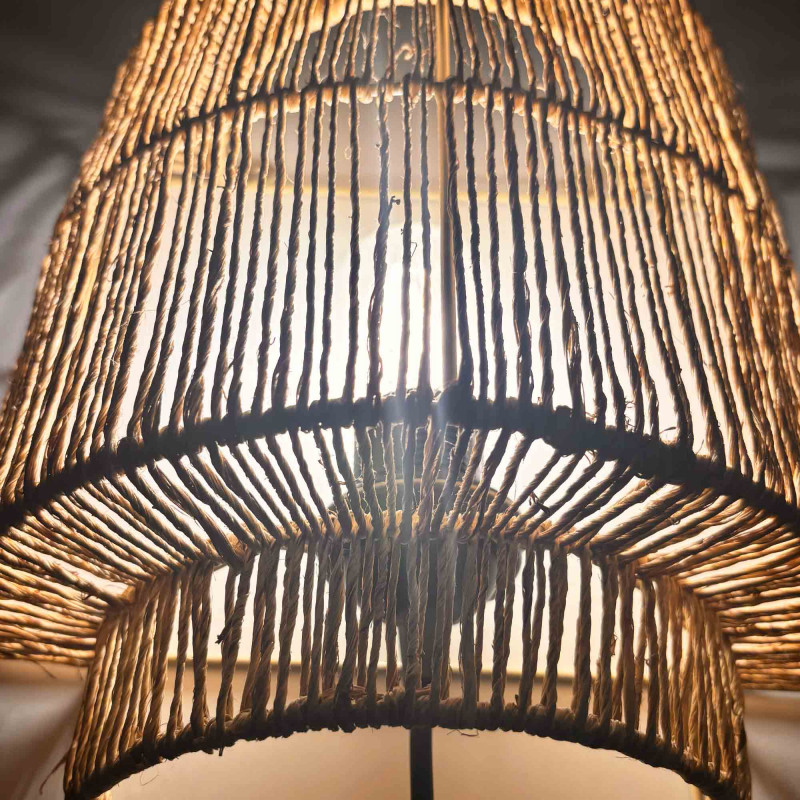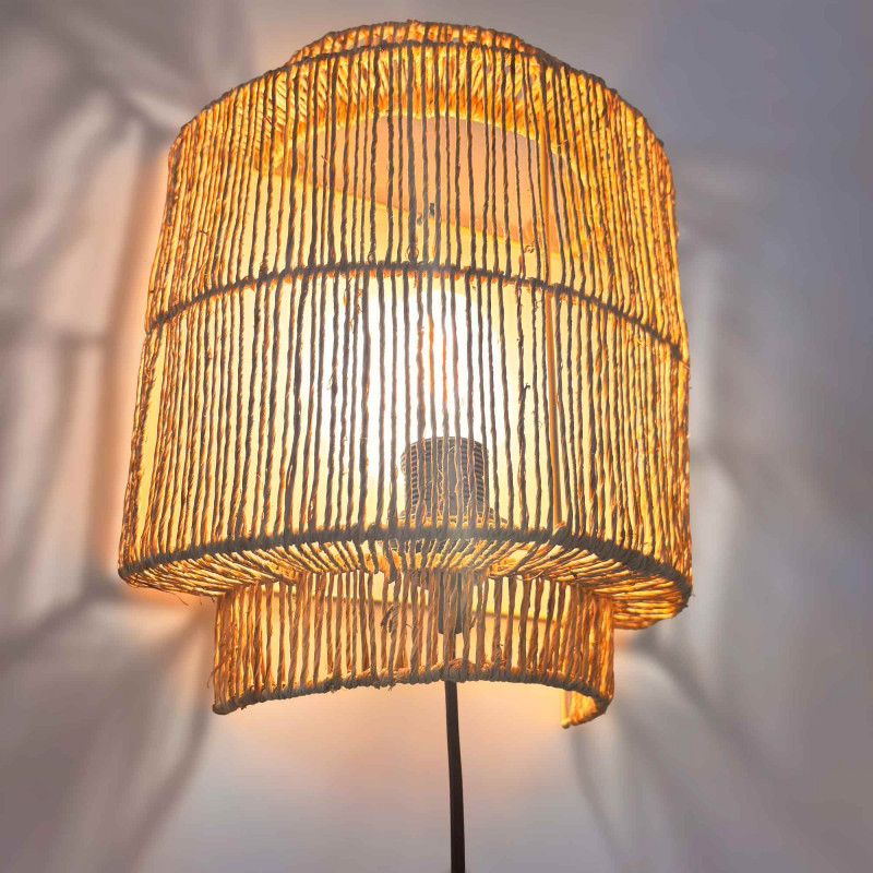 Ta lampa ścienna wyróżnia się płynnym i organicznym designem, ręcznie wykonanym z włókien roślinnych, które podkreślają ciepło i osobowość przestrzeni. Idealny do salonów, sypialni, korytarzy lub kącików czytelniczych.