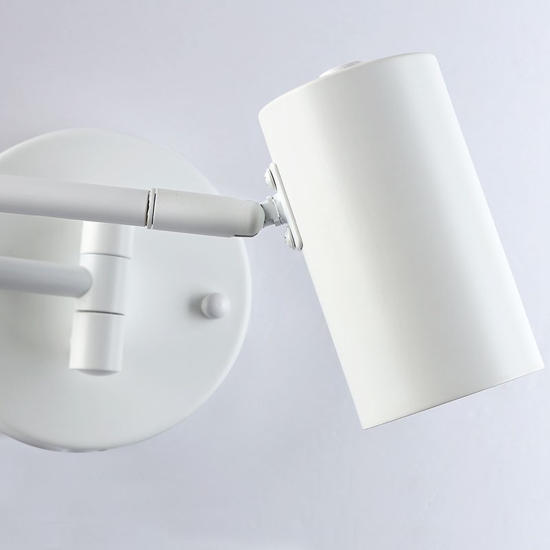 Lampa ścienna wykonana z aluminium o minimalistycznym designie z prostymi i eleganckimi liniami. Posiada cylindryczny klosz połączony z okrągłą podstawą za pomocą przegubowych ramion.
