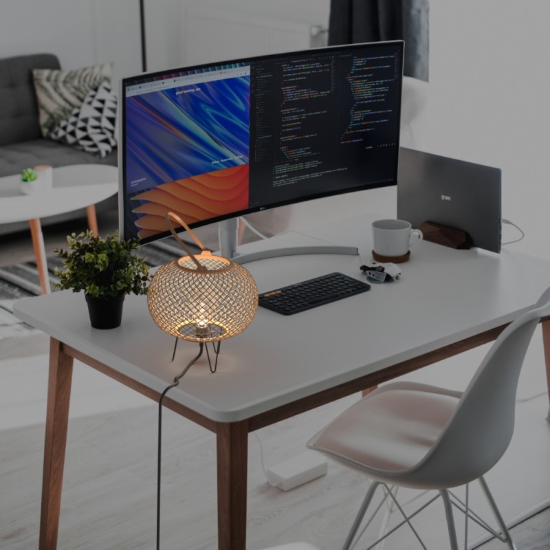 Ręcznie wykonana lampa stołowa o wysokiej jakości wykończenia.