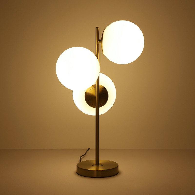 Lampa stołowa potrójna kryształowa kula "ROM" - 3 x E27 - Ø 15cm