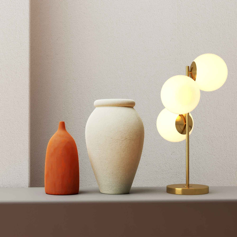 - Konstrukcja z potrójną kulą: Trzy wysokiej jakości klosze z opalowego szkła zapewniają równomierne i przyjemne oświetlenie.