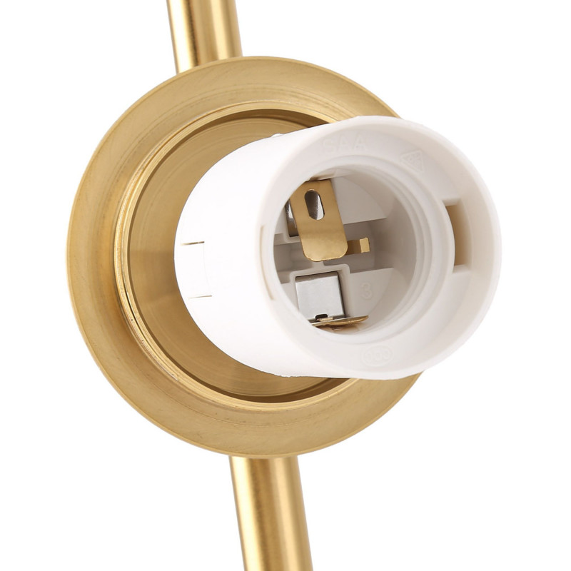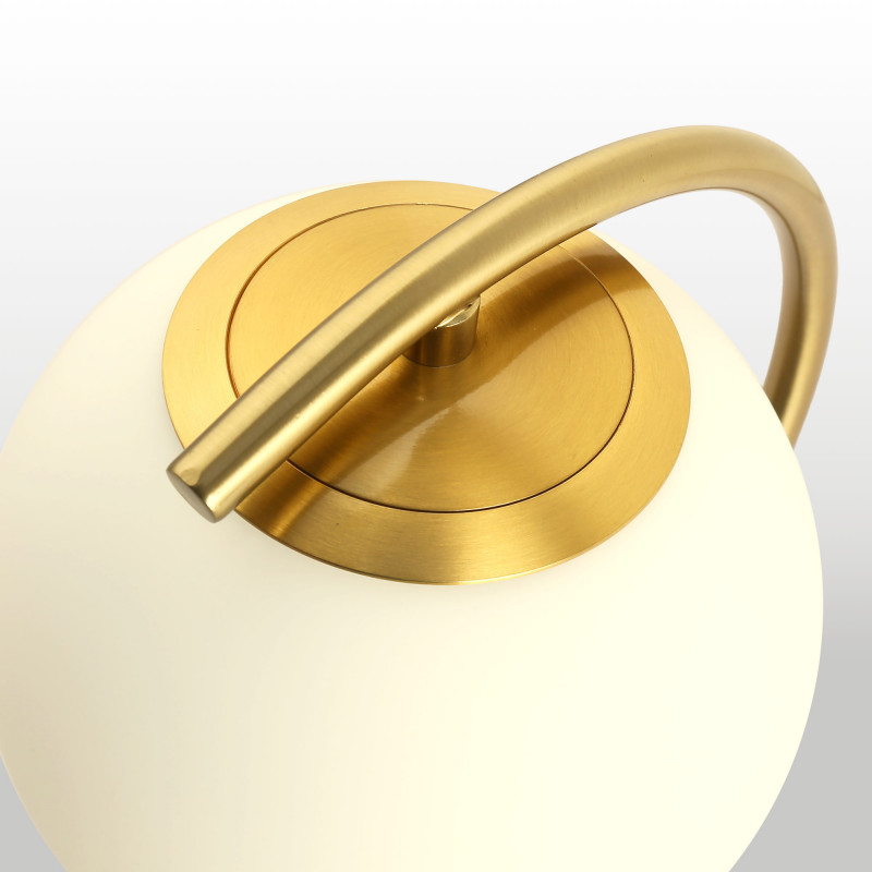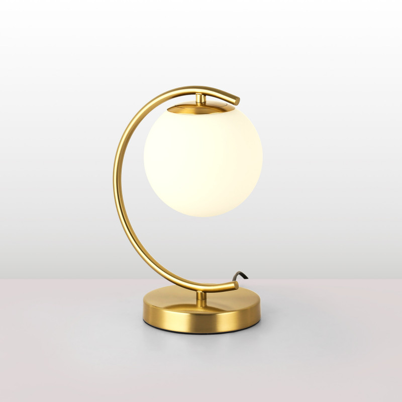 - Wyrafinowany design: Składa się z eleganckiej zakrzywionej aluminiowej struktury w matowym złotym wykończeniu i opalowej szklanej kuli o wysokiej przepuszczalności światła.