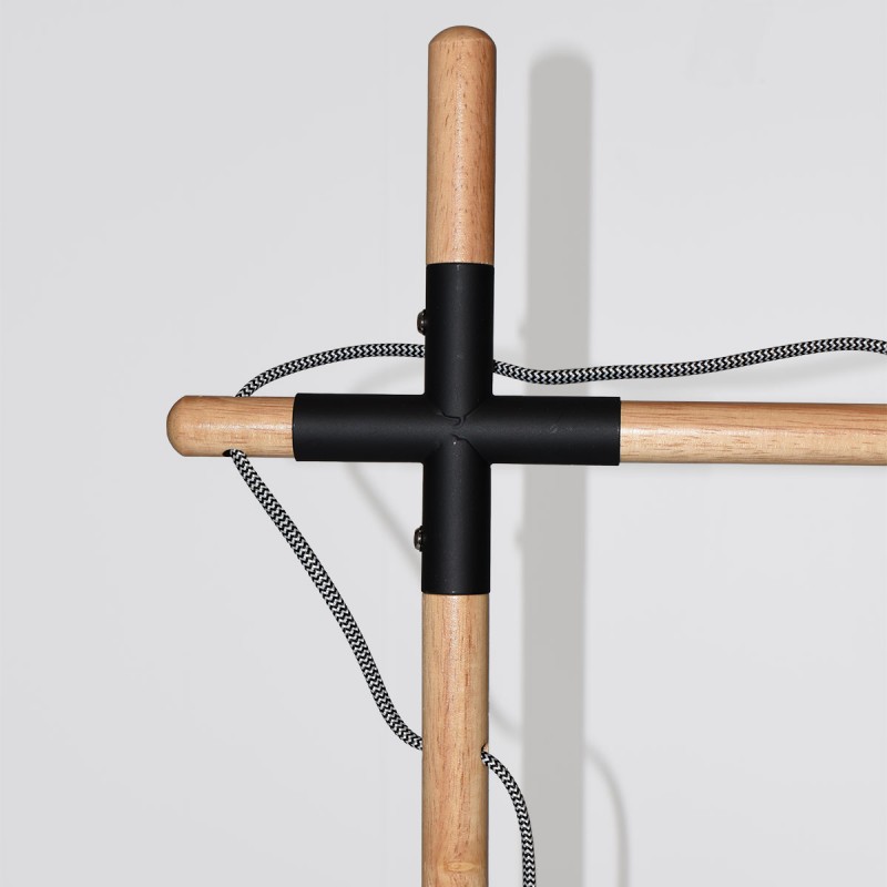 Ta drewniana lampa stołowa jest inspirowana stylem skandynawskim, oferując wyjątkowy styl. Kabel dołączony do lampy jest czarno-biały, co nadaje jej eleganckiego charakteru, dzięki czemu można ją łączyć w wielu miejscach. Przewód, który utrzymuje oprawkę żarówki E27, ma oryginalny układ, owijając przewód wokół drewna lampy, jakby był całkowicie naturalny.