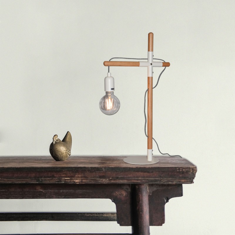 Ta drewniana lampa stołowa jest inspirowana stylem skandynawskim, oferując wyjątkowy styl. Kabel dołączony do lampy jest czarno-biały, co nadaje jej eleganckiego charakteru, dzięki czemu można ją łączyć w wielu miejscach. Przewód, który utrzymuje oprawkę żarówki E27, ma oryginalny układ, owijając przewód wokół drewna lampy, jakby był całkowicie naturalny.