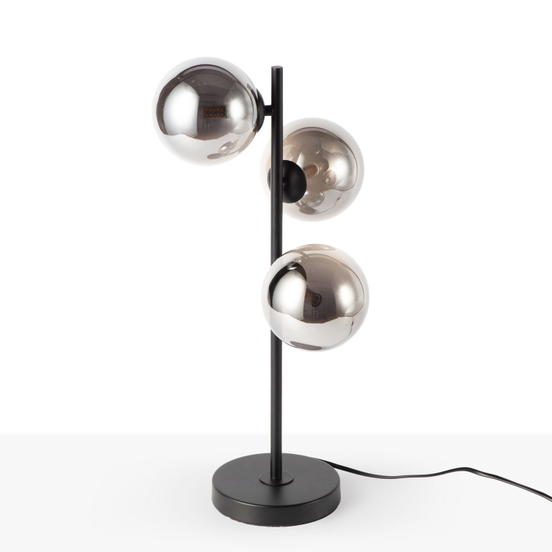 - Wysokiej jakości materiały: solidna metalowa podstawa i trzy szklane kule podkreślają design.
