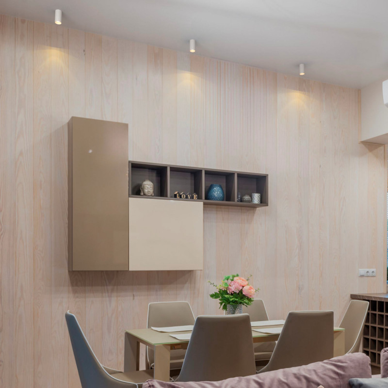 Cylindryczna lampa sufitowa o kompaktowych wymiarach i eleganckim, minimalistycznym stylu, łatwo łącząca się z nowoczesnymi stylami dekoracyjnymi.