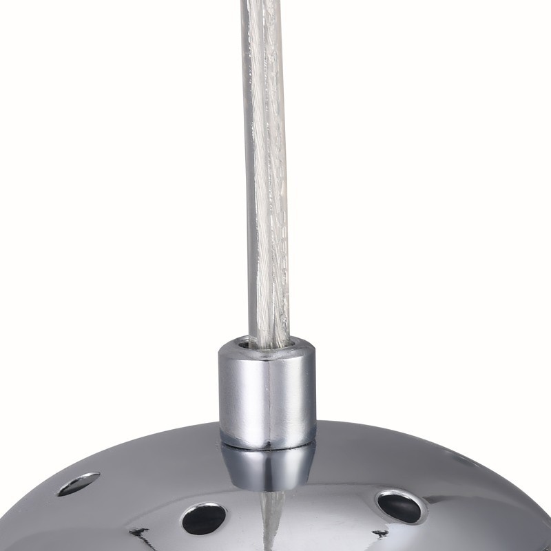 Lampa posiada cienki, przezroczysty przewód podwieszony pod sufitem do centralnej rozety sufitowej o regulowanej wysokości.