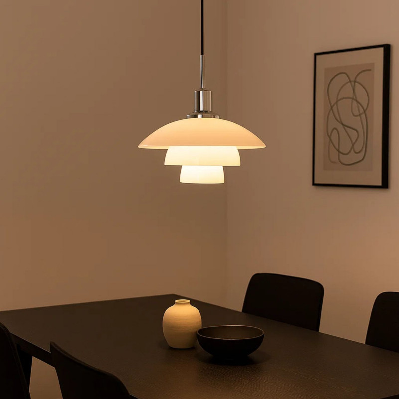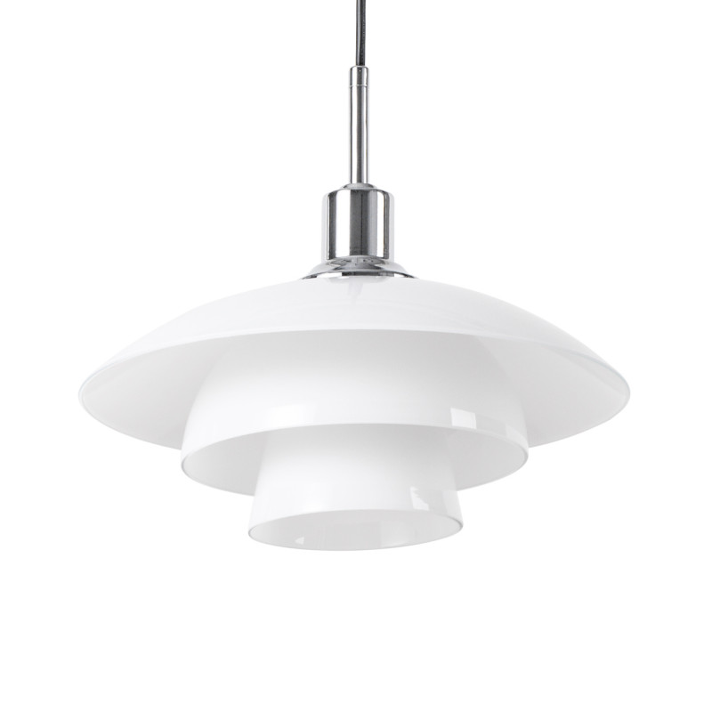 Jej konstrukcja opiera się na systemie trzech odblaskowych kloszy, które kierują światło w dół. Klosze wykonane są z opalowego szkła i są umieszczone w precyzyjnej odległości od siebie, aby zapewnić miękkie, rozproszone, nieoślepiające oświetlenie.