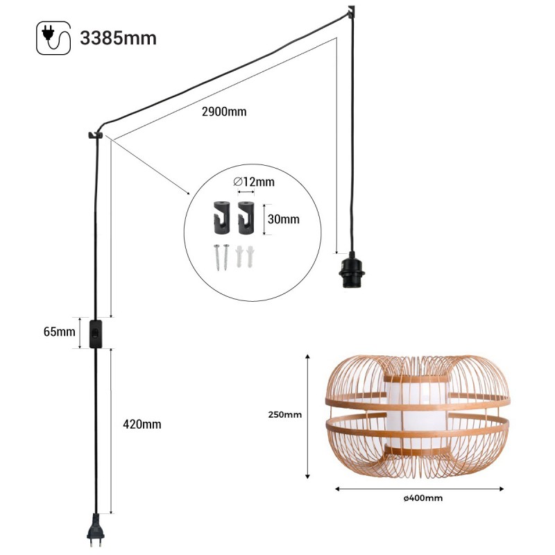 Pasuje do każdej żarówki E27 i ma 3 regulowane opcje kabla w zależności od atmosfery, z którą chcesz go połączyć (biały, czarny i naturalny sznur).